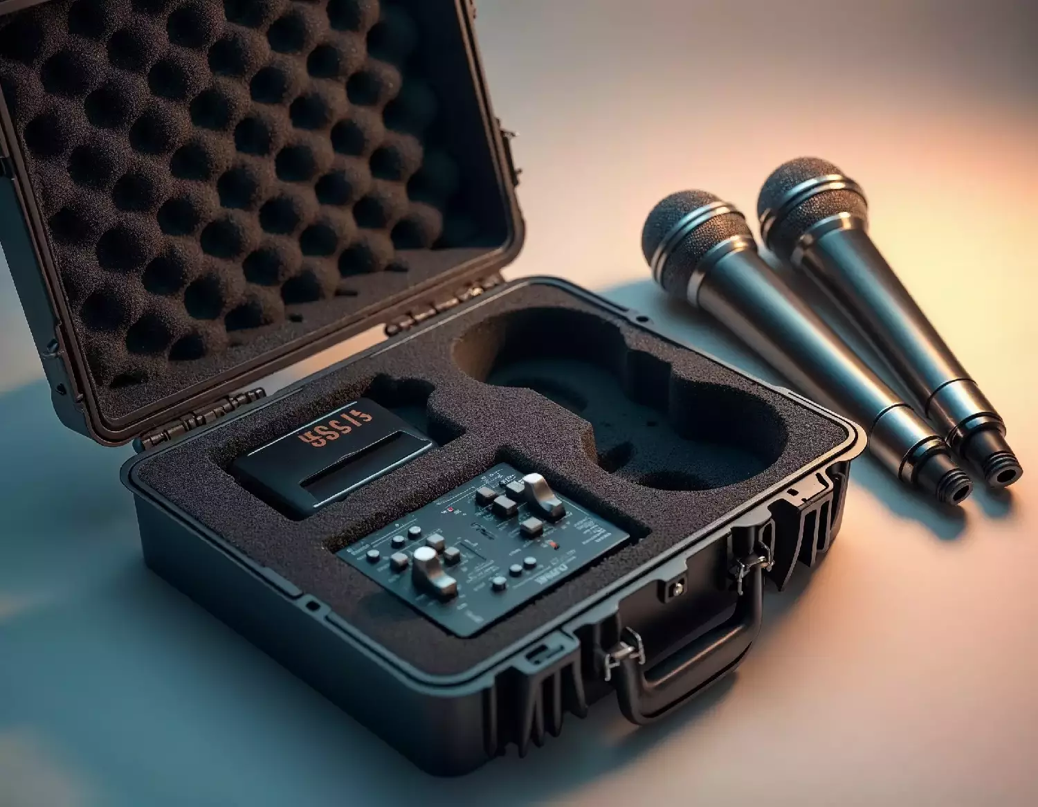 Custom made protective inserts for sound consoles, synthesizers, microphones, microphones, sound modulators, stage machinery and equipment, spotlights, lighting, lasers, fog and smoke machines. We have capability to manufacture foam inserts in custom dimensions for musical equipment or equipment sets.